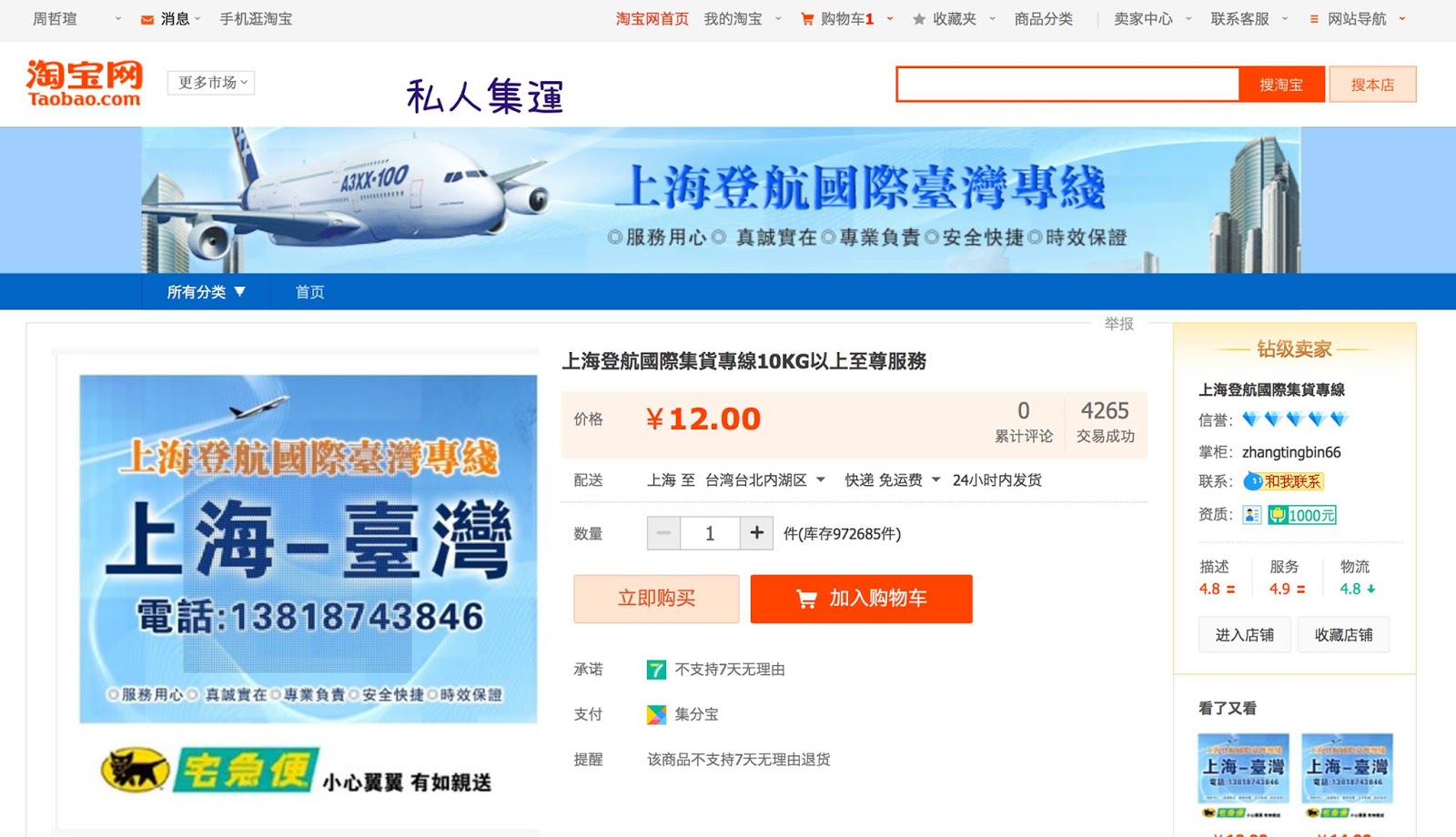 我都從淘寶買東西,因為商品費用再加運費都比台灣買划算,上網找到淘購網和集運都免收服務費,還有客服從旁幫忙 服務還不錯喔 還有可以試試阿國集運,不分普貨特貨,效率也快,具體你問他們客服吧,鏈接給你:https://www.ago12.com/?sid=34