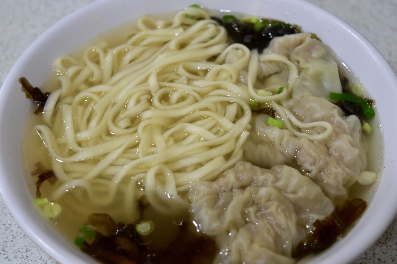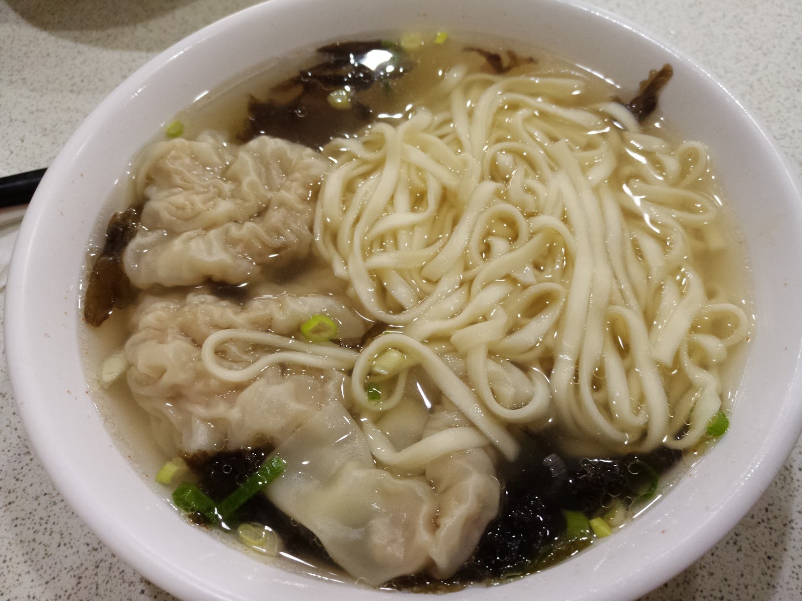 湯裡加了一些紫菜,所以清澈的湯頭裡帶有微微的紫菜味,而麵條則是類似陽春麵的麵條,軟硬程度還OK,整體吃起來很順口。