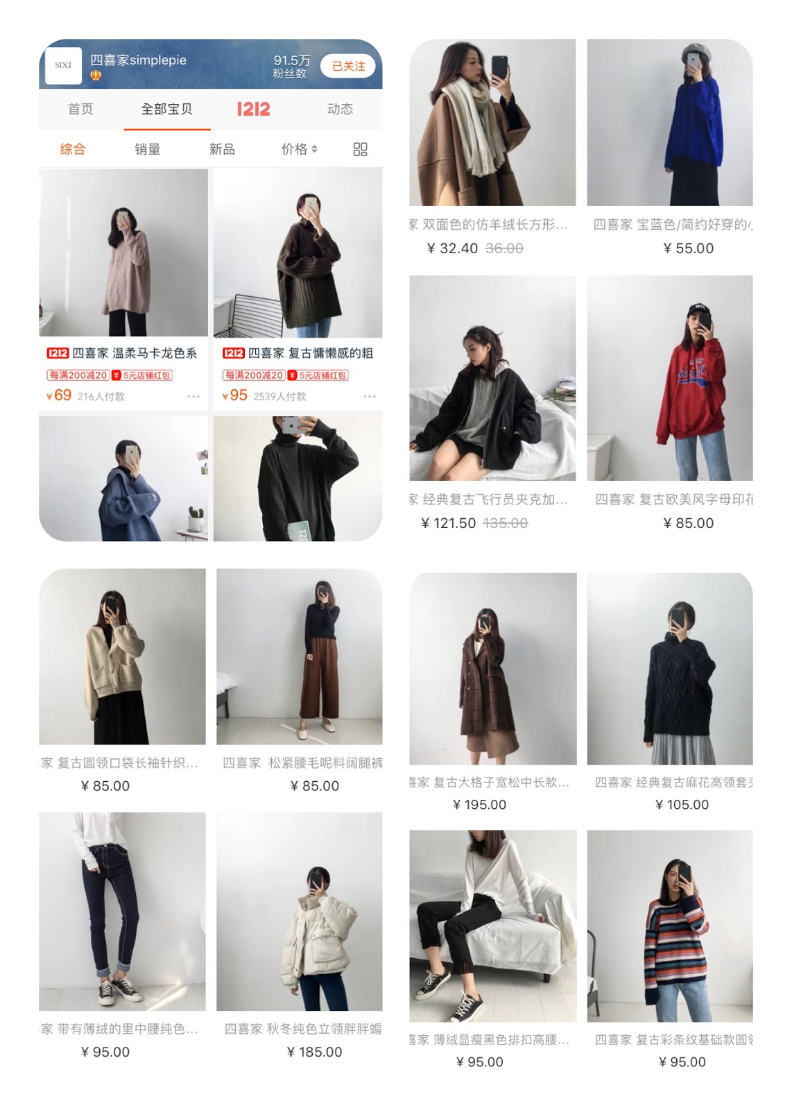 雙11剛結束,緊接著雙12就要來了(阿阿阿~聽到我的錢包在哭泣),之前有分享過夏季最愛逛的16間淘寶平價店舖(連結可以點這裡喔!),今天要來分享冬季最愛逛的七間淘寶店鋪。夏天逛淘寶時追求便宜、外觀鮮豔好看,到了冬天比較追求版型好、材質好(接觸皮膚的面積比較多要穿得舒服一點😊)今年冬天流行的穿搭風格除了從春秋就一直很紅的復古格子西裝外套外,還有穿搭的層次感(像是襯衫或大學T裡面再搭一件高領針織衫,相當的保暖呢!),這些單品在今天分享的七間店舖中都相當的有質感,讓我們一起逛一逛吧❤️(可直接點選標題就可進店逛逛囉!)(以下圖片擷取自淘寶官網)
